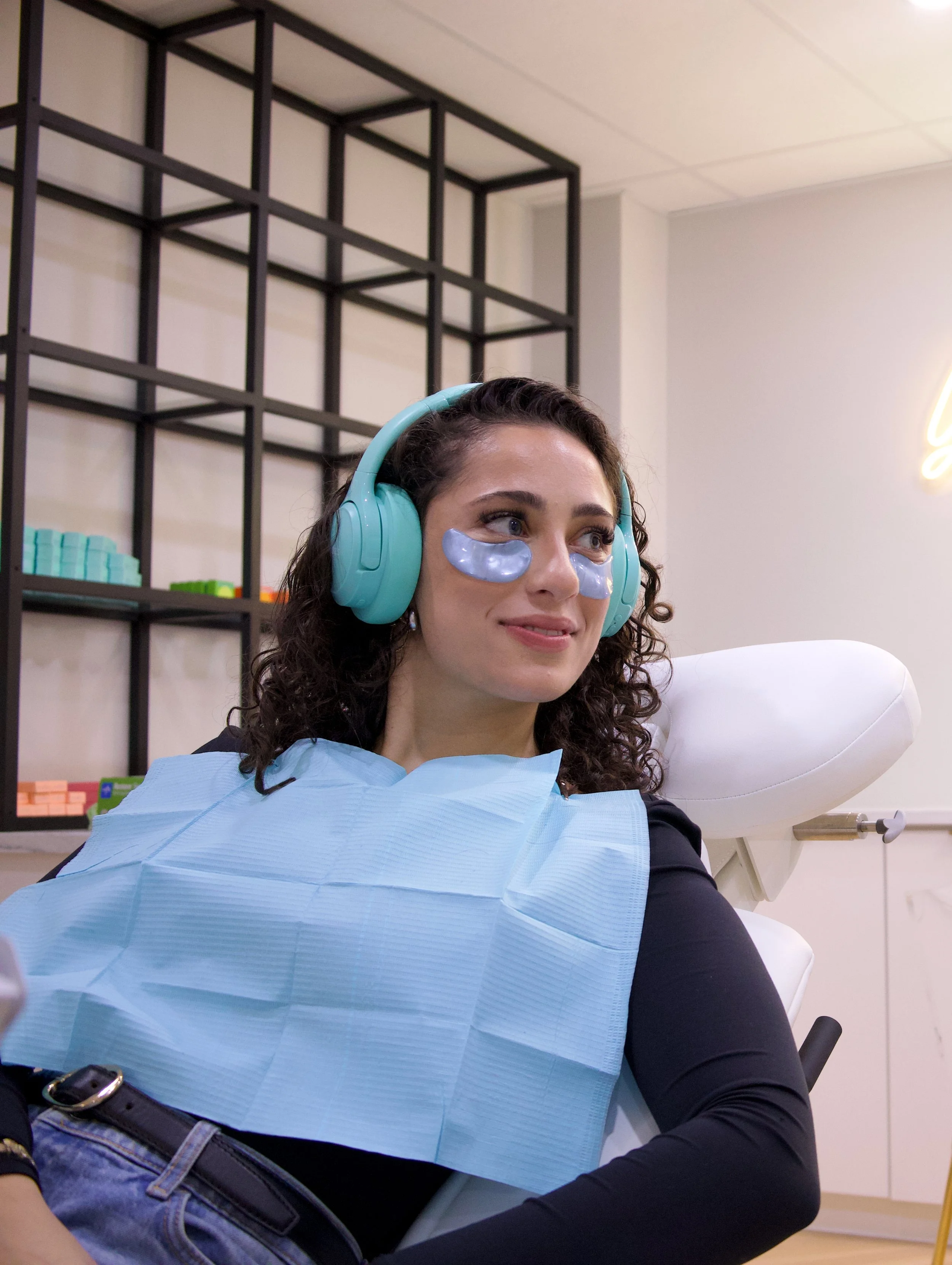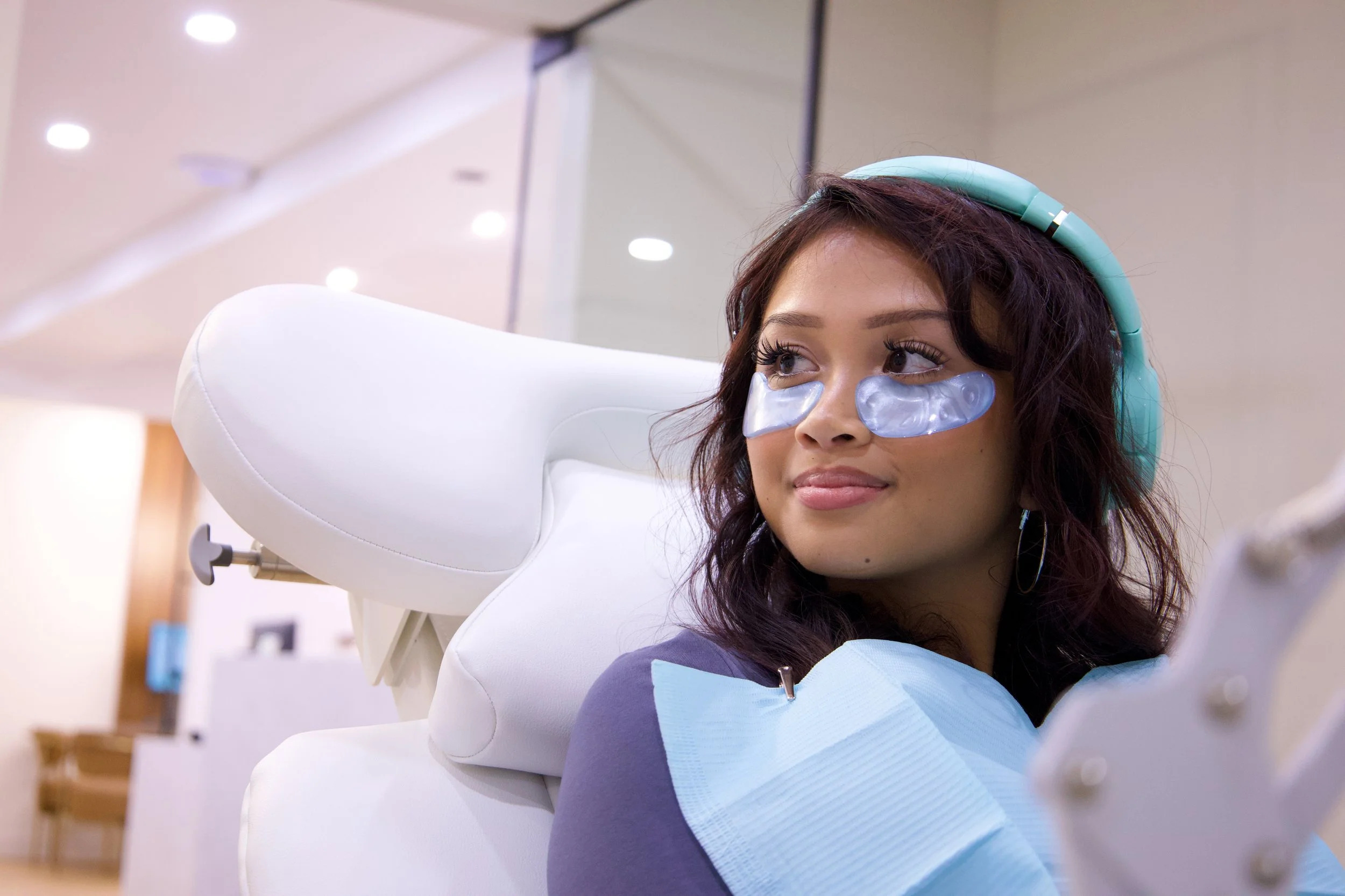 Sit back, enjoy your favourite show, and noise-cancelling headphones while your teeth whiten.