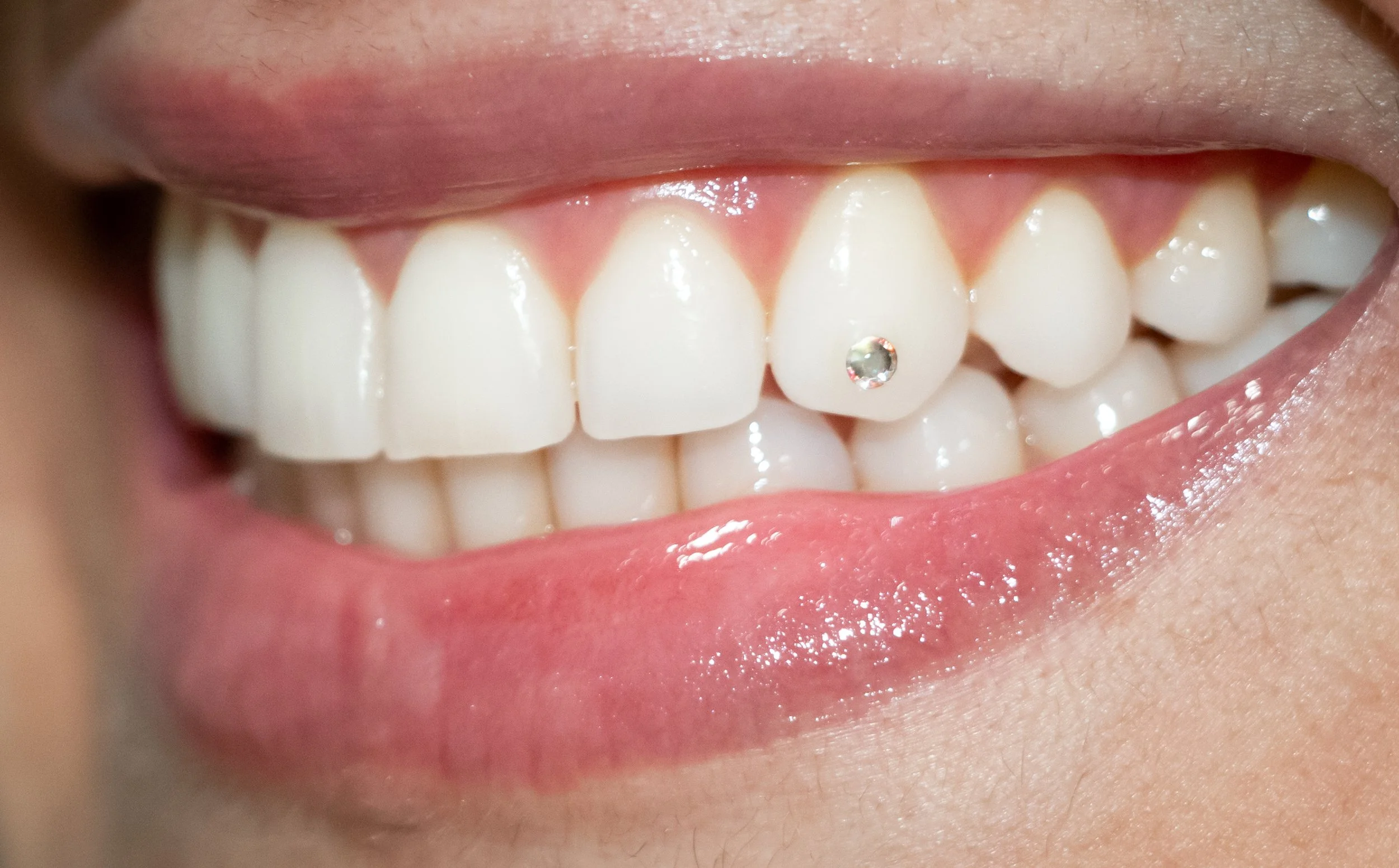 Gems are bonded to the tooth using dental-safe materials, so there is no drilling or damage.